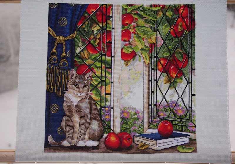 Kit contains: Zweigart Aida 16, ice blue DMC threads (37 colours),needle, chart and instruction in english & russian. Size: 29×29
