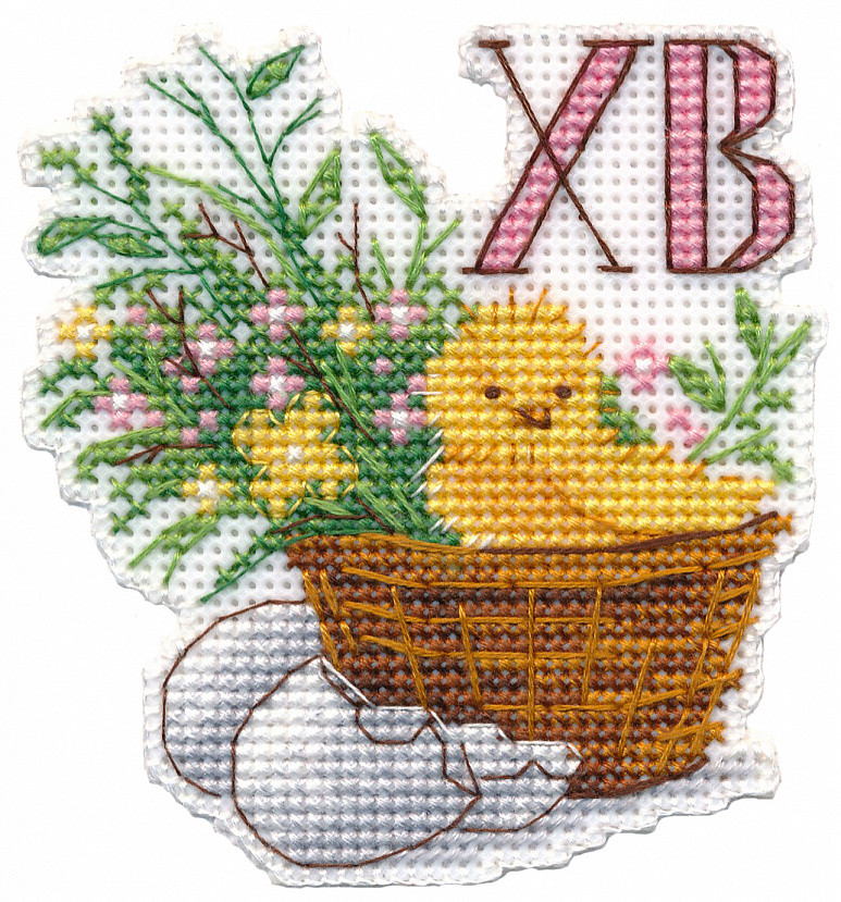 The kit includes: plastic canvas, threads, magnet, scheme, needle