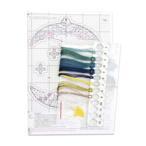 Koostis: valge plastikust toorik, PNK mulineeniidid (7 värvi), metallikniidid (2 värvi), pärlid, nõel, tikkimismuster ja -juhend.