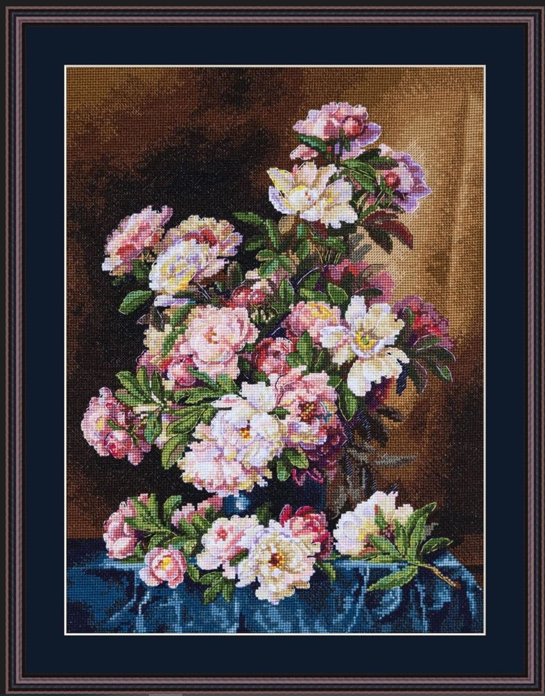 Kit contains: Zweigart Aida canvas №16 cappuccino, DMC thread (38 colours), an embroidery needle, colour chart and instructions. Size: 25×34 cm
