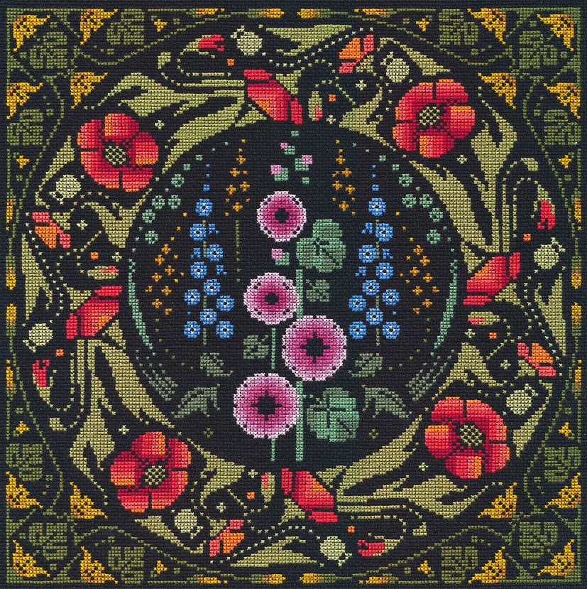 The set includes: Canvas, floss, color scheme, needle, SAGA