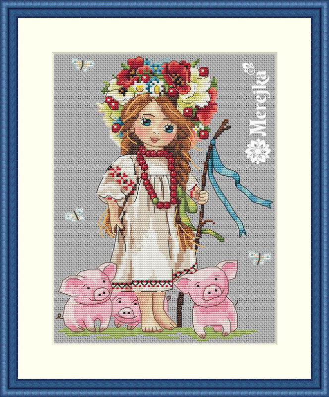 Kit contains: Zweigart Aida 16, blue-grey DMC threads (30 colours),needle, chart and instruction in english & russian. Size: 15×20