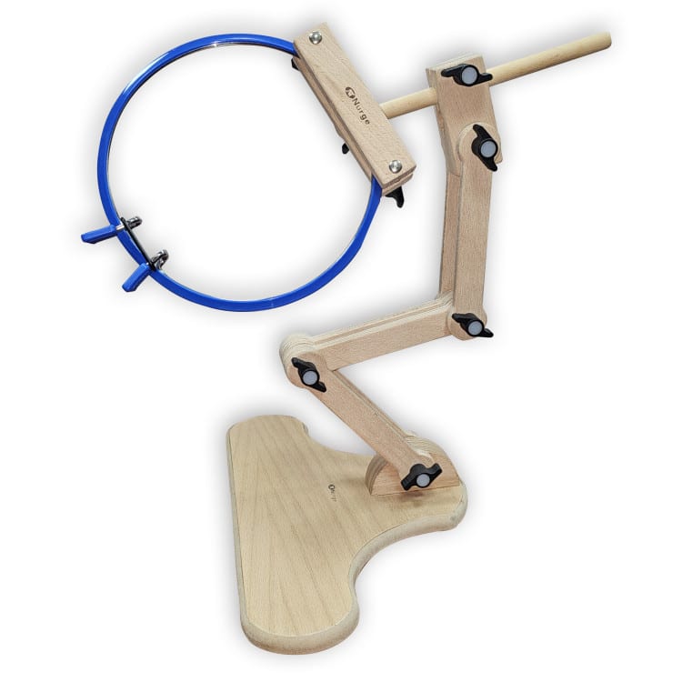 Nurge tikkimisraam-alus 190-14 on mitmekülgne ja praktiline tikkimisraam, mida saab kasutada nii lauapealse alusena kui ka istudes, asetades aluse mugavalt reie alla. See lahendus võimaldab tikkida stabiilselt ja ergonoomiliselt igas tööasendis.